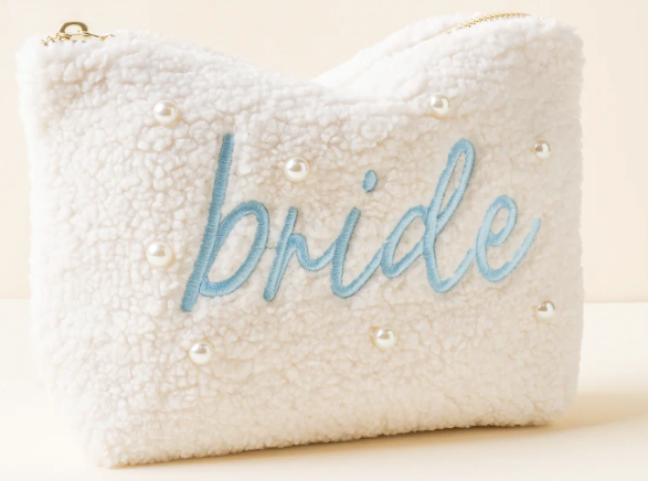 This Teddy Pouch is the perfect way to add a touch of style and sweetness to your everyday routine. Made from soft sherpa material with details, it features an adorable lining on the inside and gold zipper details