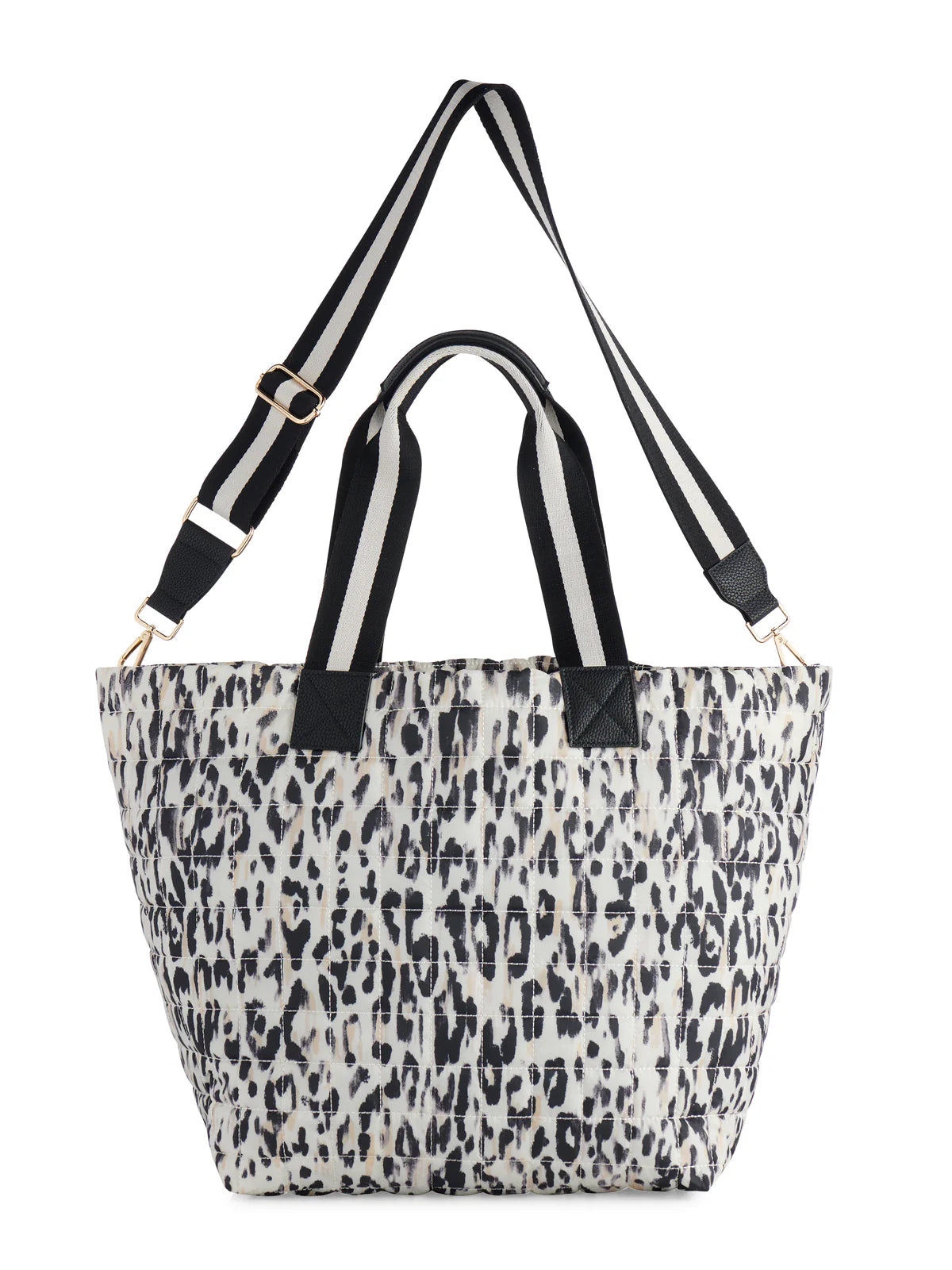 Meet your go-anywhere, carry-everything companion: the Ezra Travel Tote. Crafted from quilted nylon, this lightweight bag is designed to keep you effortlessly organized with ample space for your essentials (and then some). With durable dual handles and a playful detachable strap, you can wear it your way – crossbody, shoulder, or hand-held. Available in vibrant hues, versatile neutrals, and fun patterns, the Ezra Tote ensures you're travel-ready with a side of style.