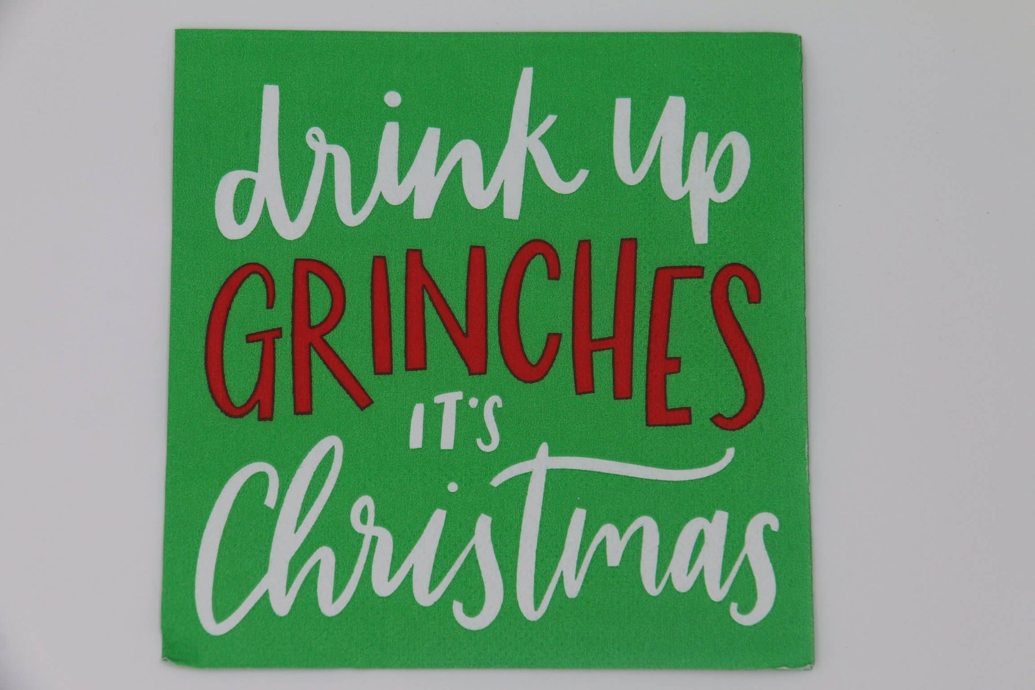 Drink Up Grinches It's Christmas Funny Christmas Cocktail Napkins